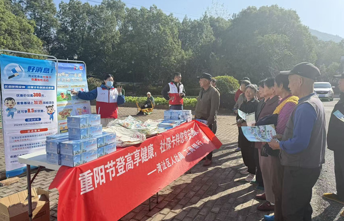 为传承中华优秀传统文化,推动人社惠民政策精准触达基层群众,近日,湾沚区人社局联合工商银行在珩琅山创新开展 “重阳节登高享健康,社保卡伴您常安康” 主题活动,将政策宣讲、便民服务与传统民俗深度融合,以群众喜闻乐见的方式打通服务群众 “最后一公里”。