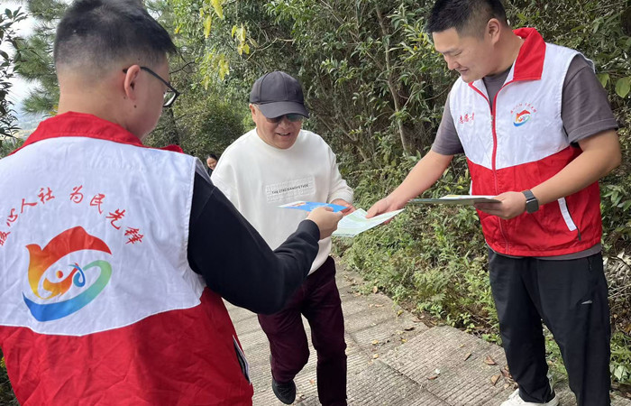 随着登山队伍向山顶进发,政策宣传的 “流动阵地” 同步开启。工作人员沿着登山路线主动对接沿途游客,结合户外出行场景,灵活讲解社保卡申领、退休待遇申领、异地就医备案等惠民政策,实时解答群众关于社保卡挂失补办、线上业务办理等咨询。这种 “边走边讲、随问随答” 的形式,打破了传统室内宣讲的时空限制,让政策知识随登高脚步 “走进” 更多群众心中。