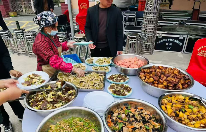 戏曲余音绕梁,敬老院的食堂里已是香气四溢。中午时分,一场温馨的“百叟宴”正式开席。志愿者们穿梭忙碌,为老人们端上了一道道热气腾腾、软糯可口的佳肴。红烧肉、清蒸鱼、鸡汤馄饨……菜品不仅注重营养搭配,更充分考虑了老人们的饮食习惯。志愿者们一同为老人们夹菜、斟茶,老人们围坐在一起,像一大家子一样,边吃边聊,回忆往昔,畅谈今朝。一位九十高龄的马爷爷激动地说:“这么多人一起过节,有戏听,有酒席吃,心里头热乎乎的,比过年还高兴!”