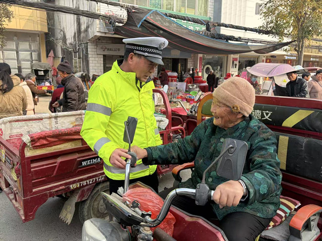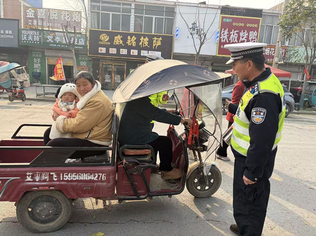 理论学习即刻转化为实战行动。在辖区重点路口,联合执法人员身穿反光衣,划分小组、协同开展工作。对电动车不戴头盔、逆行、违法载人等行为,先耐心劝导纠正,再结合宣传单讲解危害。“大爷,戴头盔不仅挡风,更是保命的安全盾”“农用车载人遇坑洼易侧翻,这不是规矩是底线”,接地气的叮嘱赢得群众认同。