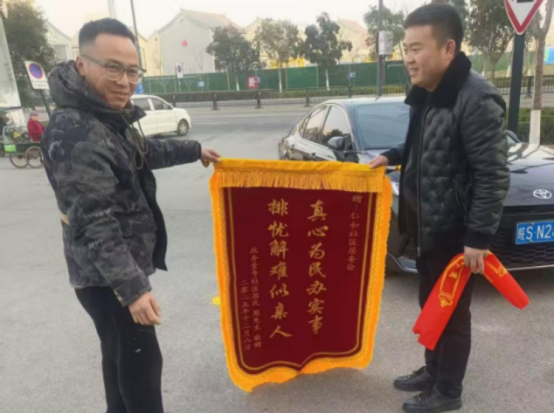 一面锦旗,一份认可;一句感谢,一份肯定。近日,涡阳县星园街道仁和社区迎来了居民周先生的暖心到访,他将一面印着“真心为民办实事 排忧解难似亲人”的锦旗郑重交到社区工作人员手中,以此感谢社区为解决小区乱停车难题所付出的努力。