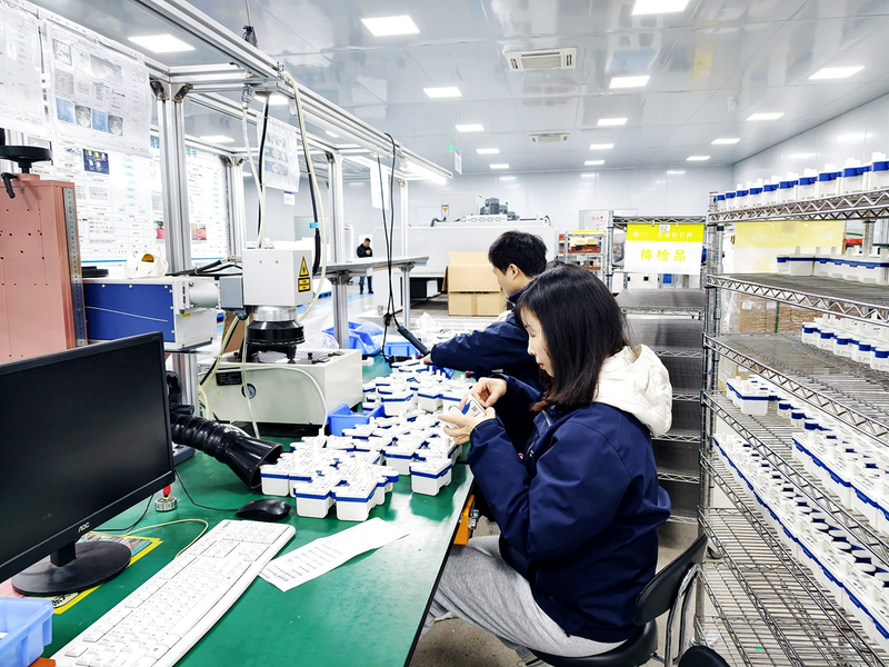安徽欧泰祺智慧水务科技有限公司生产车间里,工作人员正在给无磁远传水表组装电子装置、粘贴标识。 记者 齐蕾 摄