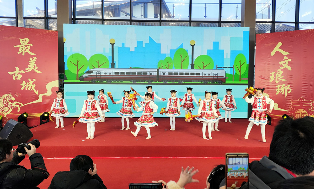 文艺表演环节精彩纷呈,黄梅戏《女驸马》、舞蹈《过年啦》、歌曲联唱《节日欢歌》《灯火里的中国》《好运来》《美丽中国》、二胡合奏《赛马》、歌伴舞《幸福中国一起走》等节目轮番上演,为现场观众带来了一场视听盛宴。