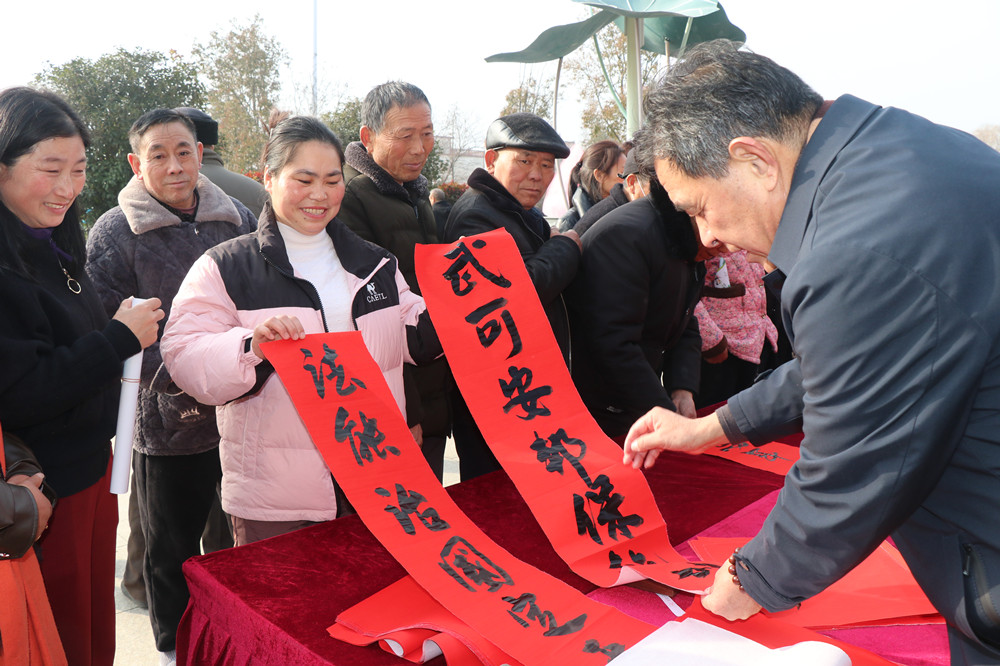 中午时分,乡亲们带着一副副饱含法治、民生、振兴、拥军等内涵与各显墨韵的春联和年货,高高兴兴地离去。那洋溢着浓浓年味的春联,不仅映红了农民们的笑脸,也映红了乡亲们的农家院。