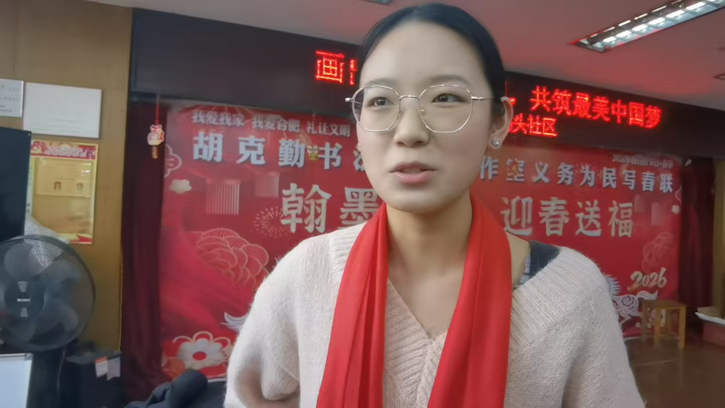 南京师范大学书法专业硕士研究生武亦凡也活跃在书写队伍中。她自幼习书,师从胡克勤老师,此次趁寒假返乡,特意报名参与。“手写春联特别有年味,能让传统文化走进家家户户,很接地气。”她表示,能以笔墨服务邻里、传递祝福,感到充实而快乐,未来也会继续参与这类书法公益活动。