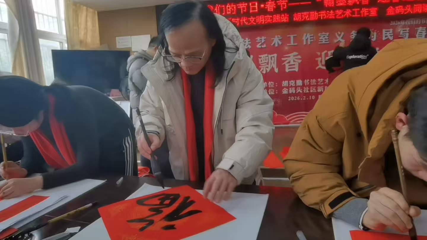 市场星报、安徽财经网(www.ahcaijing.com)、掌中安徽讯 (记者 张发平 文/图) 2月10日下午,巢湖市天河街道金码头社区二楼会议室内暖意融融、墨香四溢。2026年“我们的节日·春节”——“翰墨飘香,迎春送福”义务写春联活动在此举行,由胡克勤书法艺术工作室与金码头社区新时代文明实践站联合举办,为即将到来的马年春节提前注入浓厚的文化气息与节日温情。