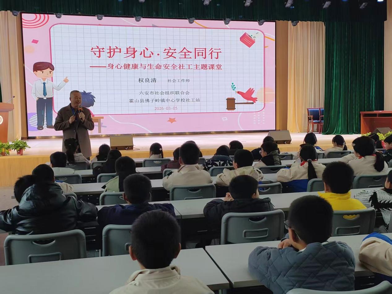 市场星报、安徽财经网(www.ahcaijing.com)、 掌中安徽讯(张传云 记者 李世宏)为深入贯彻落实2026年全国两会关于“推动基础教育扩优提质”和“健全学校家庭社会协同育人机制”的重要精神,六安市社会组织联合会发起的全市首个全职驻校社工项目,近日在霍山县佛子岭镇中心学校以一场别开生面的“开学第一课”,生动诠释了专业社工力量如何深度融入校园安全与心理健康教育体系,为青少年的健康成长筑起坚实屏障。