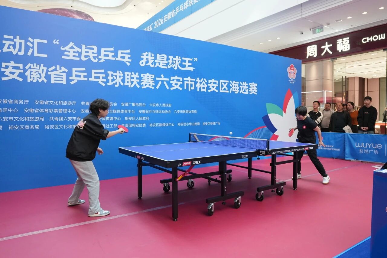 市场星报、安徽财经网(www.ahcaijing.com)、 掌中安徽讯( 刘向文 卫鑫 记者 李世宏) 连日来,随着“全民乒乓 我是球王”2026安徽省乒乓球联赛六安市裕安区海选赛在吾悦广场如火如荼地进行,这场已持续三周的体育盛事不仅成为全区乒乓球爱好者的竞技舞台,更通过“体育+”创新模式,为春日里的裕安消费市场注入澎湃动能,点燃商圈消费热潮。