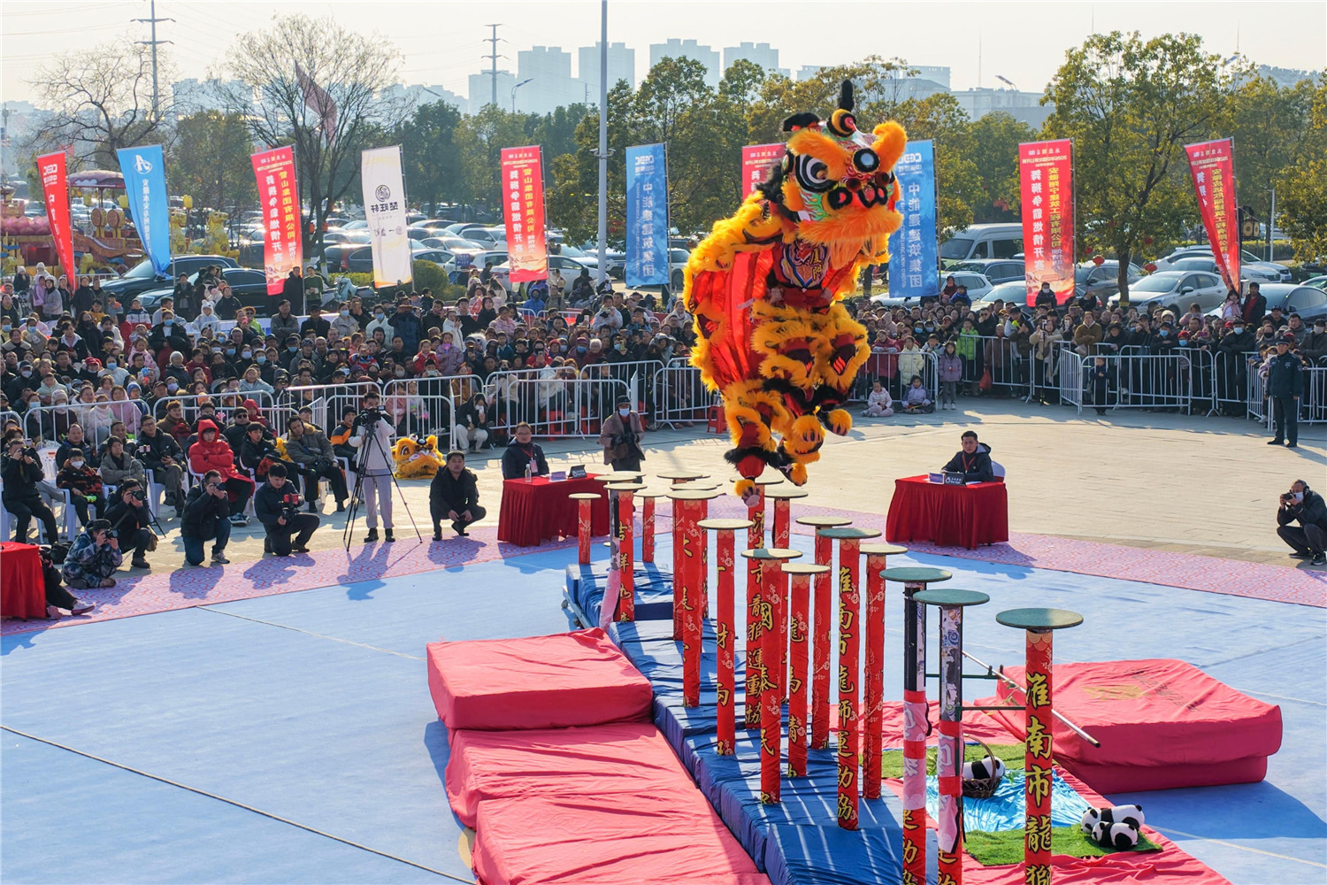 1月2日,由国家体育总局社会体育指导中心指导的2026年中国龙狮公开赛(淮南寿县站)开幕。本次公开赛汇集了全国南狮、北狮、舞龙项目共15支队伍。本报记者 李博 摄