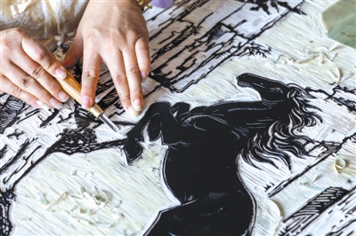 2026年1月6日,在安徽省黄山市屯溪区河街,市级非遗项目(徽派版画)代表性传承人薛寅以刀为笔,在木板上沉稳推凿,将一匹姿态昂扬的骏马融入方寸之间。雕刻从整体的雄健轮廓,到肌理的流畅线条,再到细节的动感神韵,层层深入,使骏马的生命力逐渐清晰饱满,栩栩如生。作品寓意“奋进吉祥”,以精妙的非遗技艺迎接马年新春。施亚磊 王珊 文/图