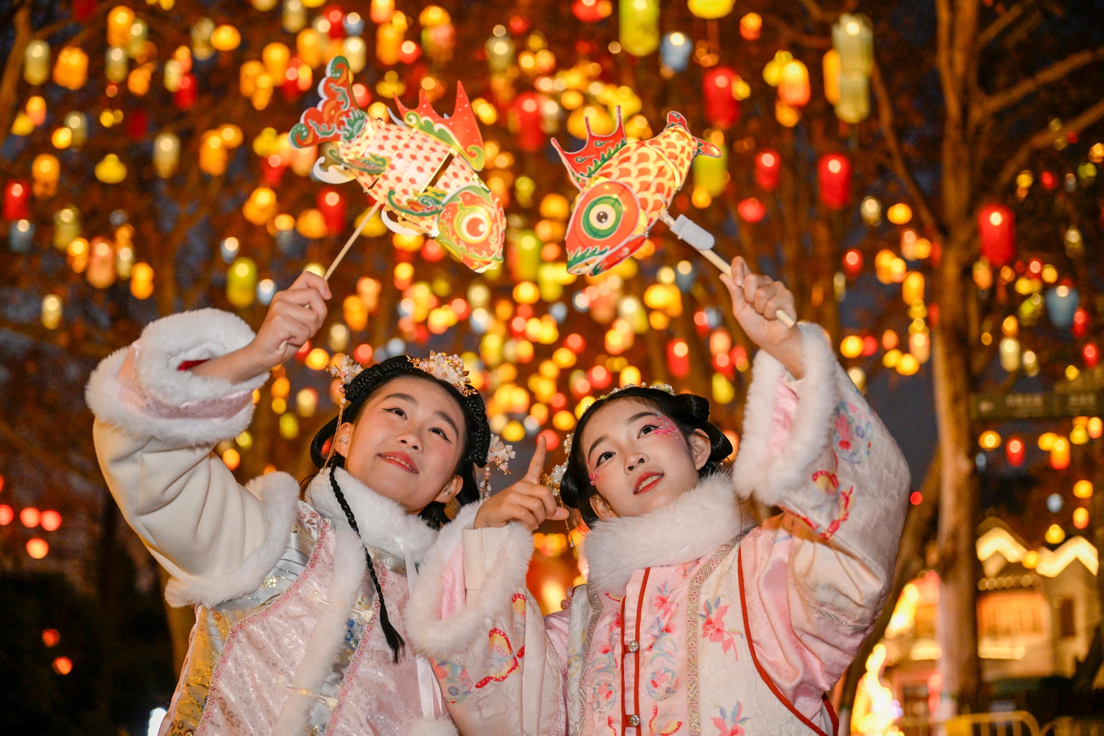 1月12日,合肥市逍遥津公园,庐阳区虹桥小学学生在体验民俗、观赏灯会。当日,该校组织学生来到逍遥津公园灯会现场,通过观看民俗表演、体验传统手工艺制作,近距离了解传统民俗文化,增强学生对传统文化的认同感和自豪感,培养学生的文化自信。