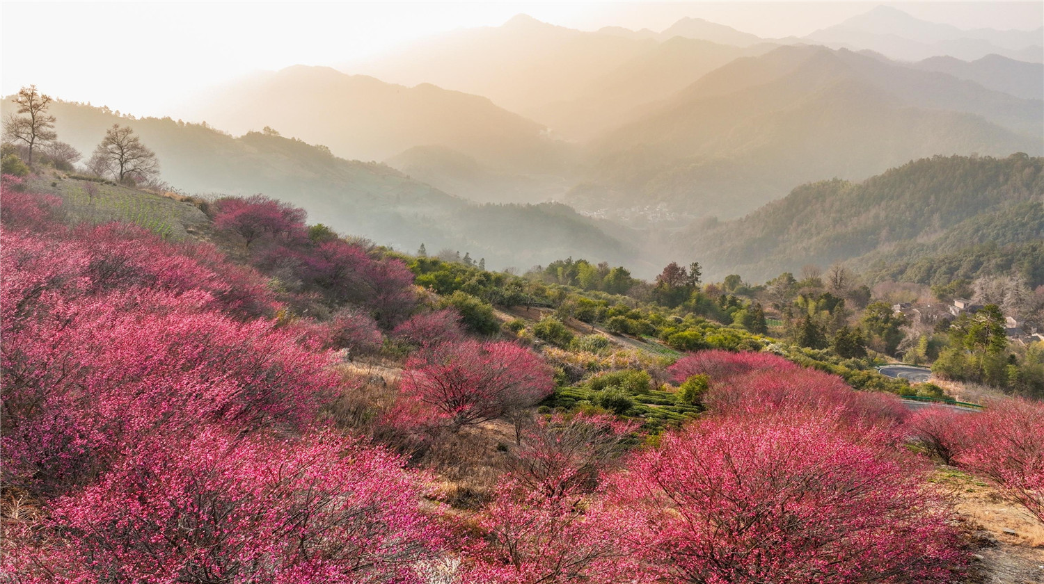 1月18日,歙县霞坑镇石潭村,梅花竞相绽放,暗香浮动,风景如画,吸引游人前来赏花拍照,享受冬日“梅”好时光。