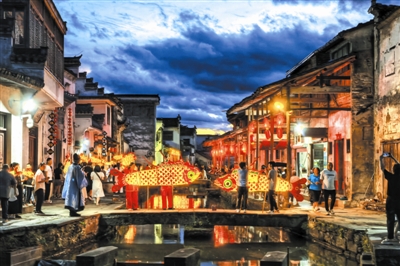 今年唐模的新春,注定流光溢彩。景区重磅引入“全运会同款鳌鱼”景观,气势恢宏,寓意“独占鳌头”,是游客必到的开年打卡首站。入夜后,整个古村将化身梦幻光影世界,非遗鱼灯巡游队伍宛如流动的星河。不容错过的“非遗打铁花”,千年铁火如金花绽放,与徽派马头墙交相辉映,构成最绚烂的年度记忆。