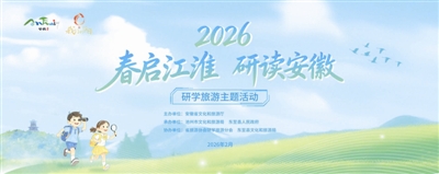 祥瑞润江淮,研学启新章。为充分发挥文化和旅游资源优势,丰富广大青少年寒假与春节期间的精神文化生活,推动我省研学旅游高质量发展,根据文化和旅游部办公厅关于开展“行读九州 研学中国”主题研学活动部署要求,安徽省文化和旅游厅将于2月5日上午在池州市东至县主办2026“春启江淮 研读安徽”研学旅游主题活动启动仪式。本次活动由池州市文化和旅游局、东至县人民政府承办,安徽省旅游协会研学旅游分会、东至县文化和旅游局协办。