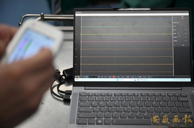 手术当天在手术室的现场调试显示,患者手部出现剧烈抖动,神经电生理曲线跳动,证实电极位置精准、手术成功