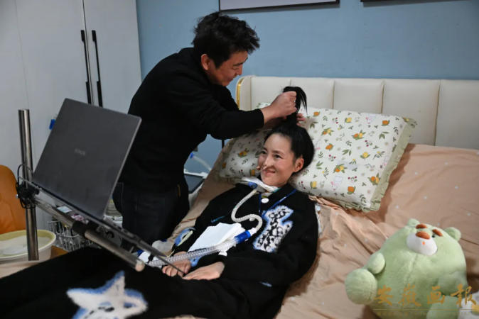1月28日,蚌埠市淮上区丽花园小区。阳光斜斜地洒进一间狭小却整洁的卧室,落在床沿。翟金龙正俯身为妻子魏云静梳头,动作轻柔,一遍一遍。屋里暖意融融,时光仿佛也放慢了脚步。