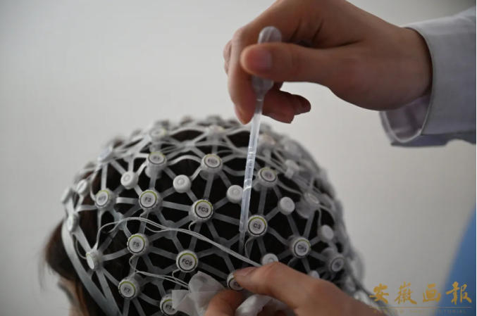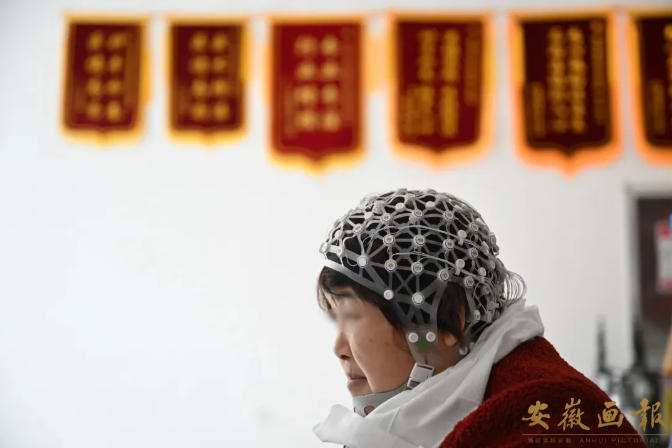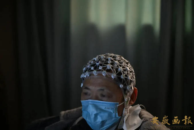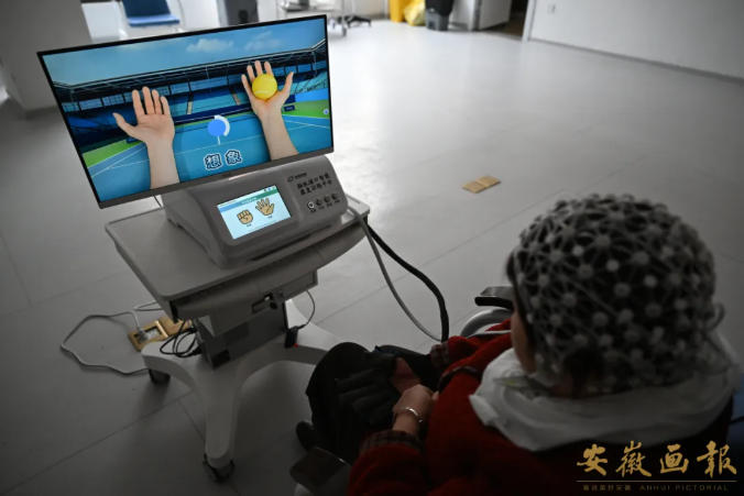 1月29日,蚌埠医科大学第一附属医院,患者通过非侵入式脑机接口接受辅助治疗