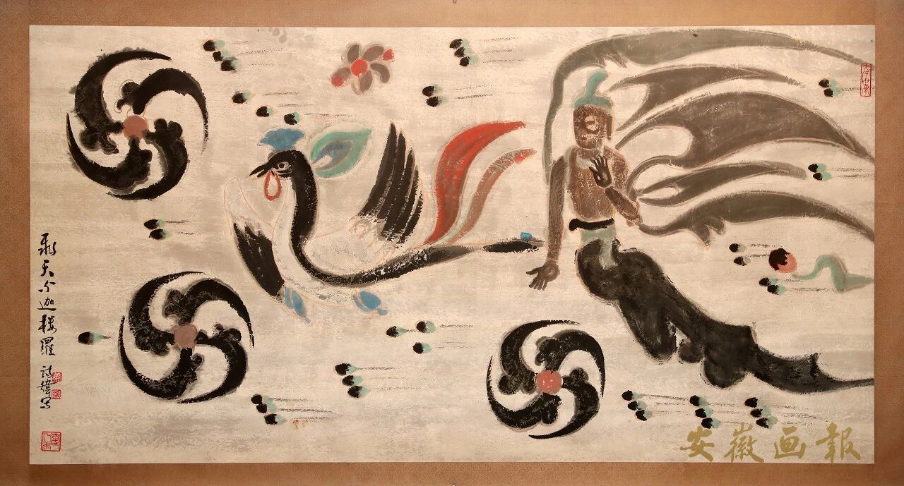 “康诗纬先生,是安徽艺坛的常青树,他以鲜明的艺术特点、艺术个性形成了很高的声誉和社会影响力,他早年从事油画创作,在刘海粟大师的指引下开始从事中国画的创作。他像很多大师一样,从敦煌这座艺术宝库汲取艺术创作的灵感。他的这个画展,不仅包含古今的对话,一个当代艺术家,用现代技法阐述厚重的历史现场,同时也包含了一种中外对话。他把油画的创作技术和东方美学精神结合得很精妙。我想这也是他艺术魅力最核心的力量之一。”安徽省文联主席、省作协主席陈先发在现场感慨道,“大家注意到没有,他的画的题款涵盖了半部中国当代文艺史。那些在中国当代文化史上刻下深刻印记的大家的笔墨,和康先生的画一起创造了我们眼前的这些作品。”