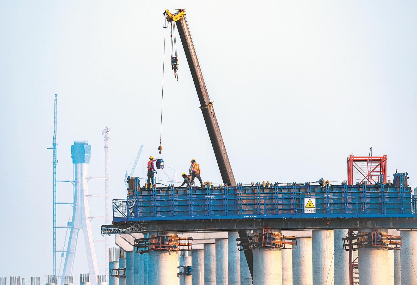 安徽财经网讯:3月13日,铜陵市枞阳县,S40宁国至枞阳高速公路铜陵段一标跨G347特大桥项目现场,建设人员在进行桥梁墩柱施工。 据了解,S40宁枞高速铜陵段路线起于池州长江公铁大桥项目北岸引桥,终于枞阳县横埠互通西侧接G3京台高速,全长约19.7公里。 (刘伯顺 记者 章沁橼)