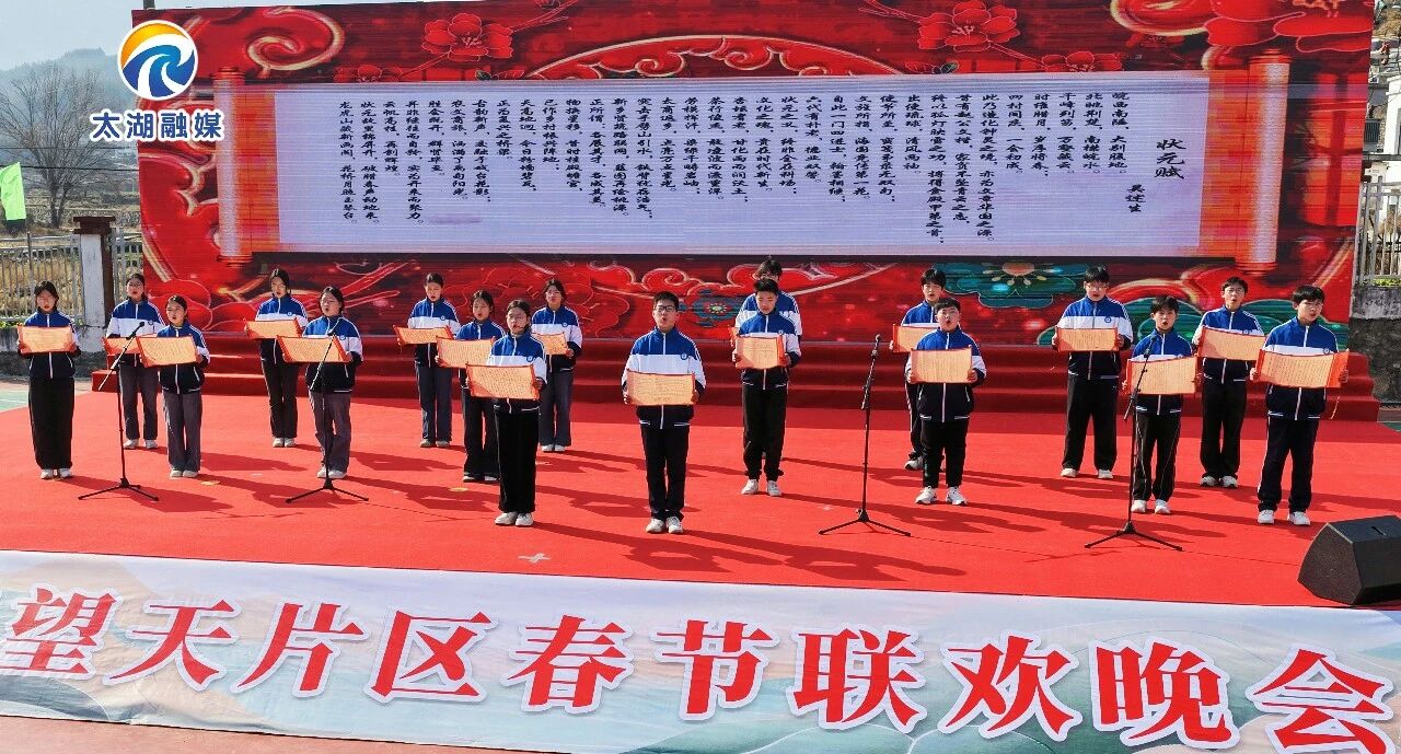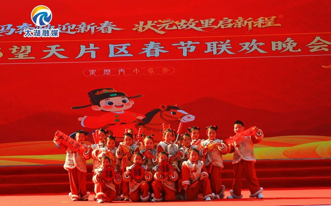 作为底蕴深厚的“状元故里”,文化传承与弘扬是晚会的核心内涵。天真烂漫的幼儿舞蹈《成语拜新年》,以童趣盎然的舞姿生动演绎传统成语,在欢声笑语中播下文化传承的种子。望天学校学子深情吟诵的《状元赋》,铿锵语调穿越千年时光,引领观众重温本地深厚的文脉,彰显了新时代青少年的文化自信。当天,许多望天学校毕业的乡贤学子也返回家乡,与乡亲们共赏新春晚会、共话家乡发展、共绘振兴蓝图。