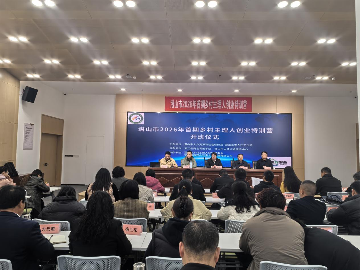 近日,为期五天的2026年潜山市首期乡村主理人创业特训营圆满落幕。该活动由潜山市人力资源和社会保障局、潜山市委人才工作局联合主办,潜山市人才综合服务中心与安吉青创学院共同承办。