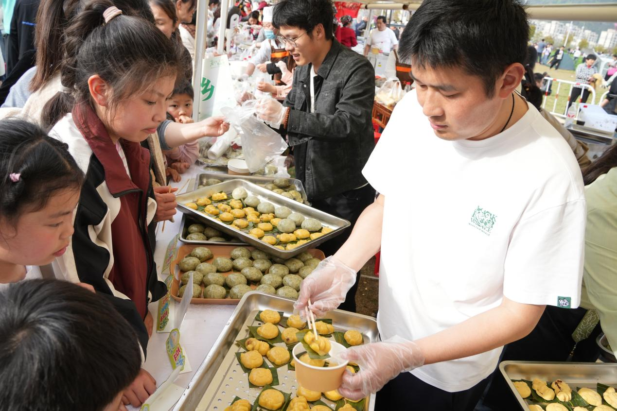 活动中还设置了亲子体验区,孩子们在家长和老师的指导下,揉面团、捏青团,有模有样地学习制作水萩粑。小手沾满糯米粉,笑声伴着水萩香,传统技艺在寓教于乐中悄然传承。