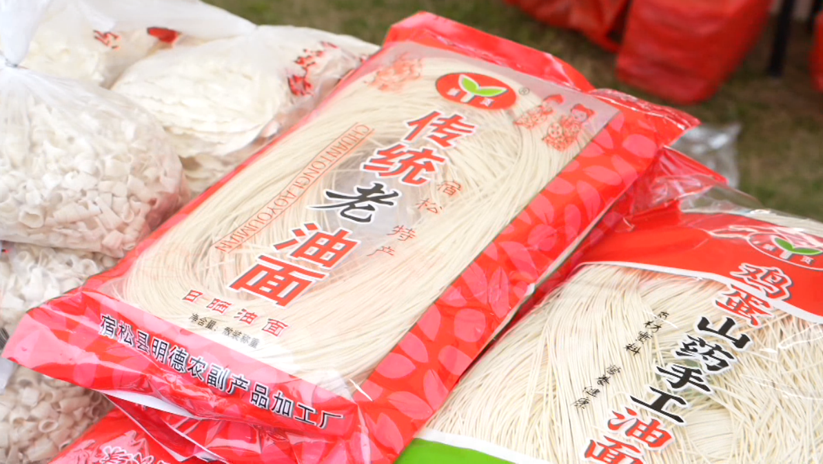 “今天这边人流量蛮大的,我们带了自己生产的金丝皇菊、生态茶叶、菌菇、土鸡蛋。”宿松县古山茶场生态农庄负责人邓正则高兴地说,“到现在一个多小时,我们已经卖了两百多单,效果还挺不错的。”