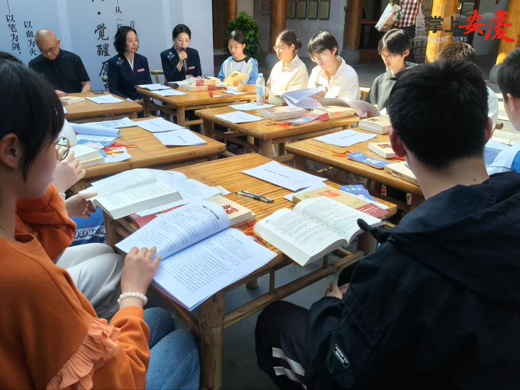 在陈延年陈乔年读书处,“回望觉醒之路 赓续青春初心”《觉醒年代》红色读书沙龙同步进行。领读人带领现场读者品读《觉醒年代》片段,大家结合先辈的革命事迹交流阅读感悟。“在革命先辈读书的地方参与阅读活动,我感受到了红色文化的厚重力量,今后我会坚持每天阅读,把读书当成一种生活习惯,在书本中增长见识、提升自我。”安庆一中高一学生汪子龙说。