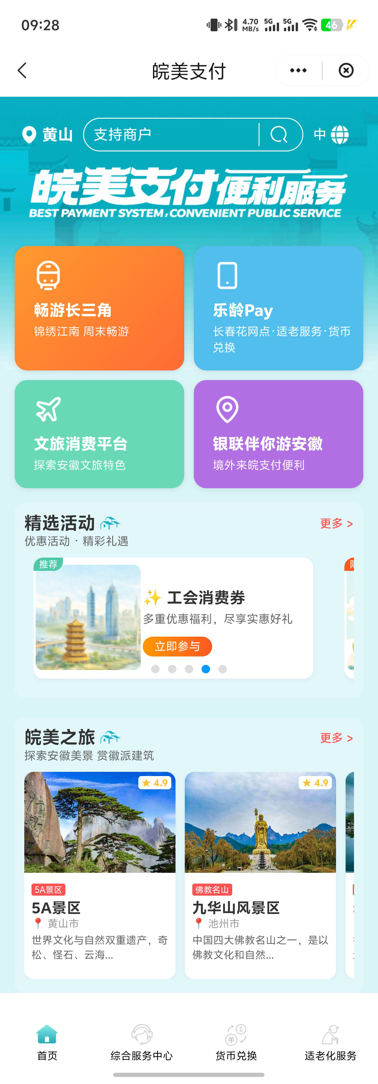 融合“文旅场景”,游客体验一站通达。 平台深度联动黄山旅游官方平台,整合门票预约、酒店预订、旅游攻略、停车代泊等全链条服务,实现“支付+文旅”场景的无缝衔接。来皖游客无需在多个应用间切换,即可享受从行程规划到消费支付的一站式畅游体验。