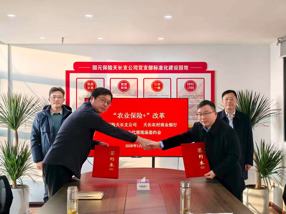 市场星报、安徽财经网 (www.ahcaijing.com)、掌中安徽讯 (王艺璇) 为进一步深化“农业保险+”改革,推动省级框架协议在基层落地见效,1月14日,国元保险天长支公司与天长农村商业银行签署保险兼业代理协议,此次签约旨在将2025年12月达成的战略共识正式转化为基层实践,标志着双方合作进入以渠道共享与服务下沉为核心的实质性推进阶段。