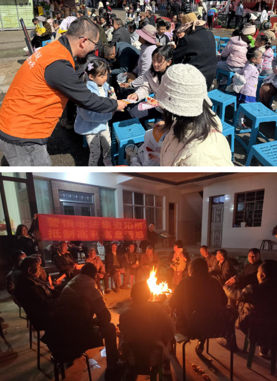 阳光人寿延安、酒泉中支则现身早市、年货市集,在人流高峰时发放宣传彩页,讲解非法集资、电信诈骗防范技巧。酒泉一位置办年货的王女士说:“听了你们的讲解才知道,有些看似高回报的投资背后藏着这么多陷阱,以后肯定多留个心眼。”阳光人寿云南分公司打造“民俗+宣传”模式,将制作糖葫芦、福字拓印与金融消保知识相结合;保山中支在王海村篝火联欢中穿插金融知识讲解,为村民讲解金融安全知识;红河中支则在社区游园活动中拆解养老骗局、提醒切勿出借银行卡。