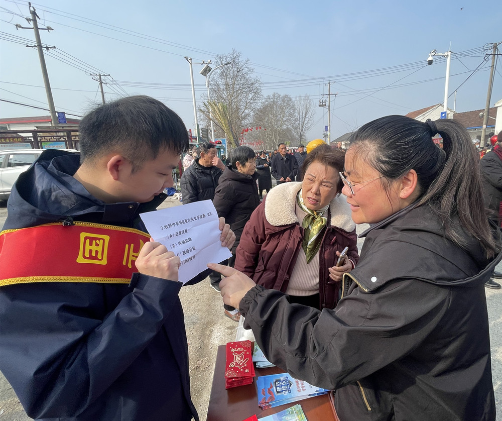 市场星报、安徽财经网 (www.ahcaijing.com)、掌中安徽讯 (徐堂健) “二月二,龙抬头,逛庙会,迎好运”。3 月 20 日,正值农历二月初二,一场源于西汉、沿袭千年的民俗盛会在全椒县十字镇界首村热闹上演。国元保险全椒支公司紧抓这一人流聚集的有利时机,组织工作人员在界首村委会门口设立宣传点位,开展金融知识宣传活动。