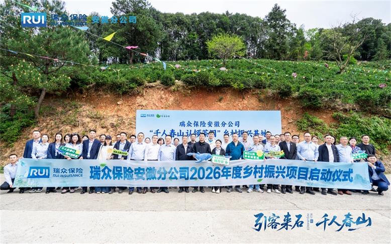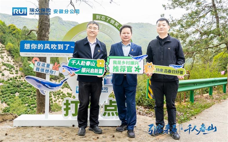 春山叠翠藏诗意,茶香漫野润心田。近日,瑞众保险安徽分公司2026年第三季“千人上春山”乡村振兴公益项目在池州市石台县太胜村开幕,石台县矶滩乡党委书记刘兴华与该公司总经理室、党员及中支负责人共同见证项目启幕,以党建红引领金融暖、文旅兴,凝聚政企同心助振兴的磅礴力量,用实干践行国企担当。