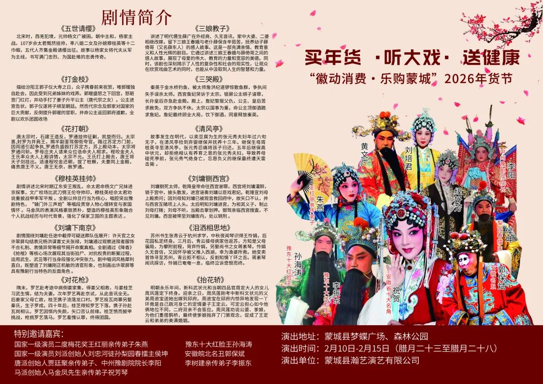 名家名段贺新春,邀请河南、淮北等地戏曲名家与本地非遗戏曲传承人同台献艺。
