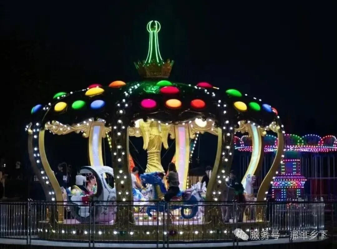 登上「星际战车」开启太空漫游,在「星际战鹰」的俯冲旋转中感受风驰电掣;或是坐上360°旋转的「迪斯科转盘」,在动感音乐中挑战平衡极限。追求浪漫?「皇冠转马」的七彩灯光与星空顶棚将童话照进现实,而「飞椅」的飘逸摆动则能让你一秒化身“空中精灵”,随手一拍就是朋友圈高赞大片。