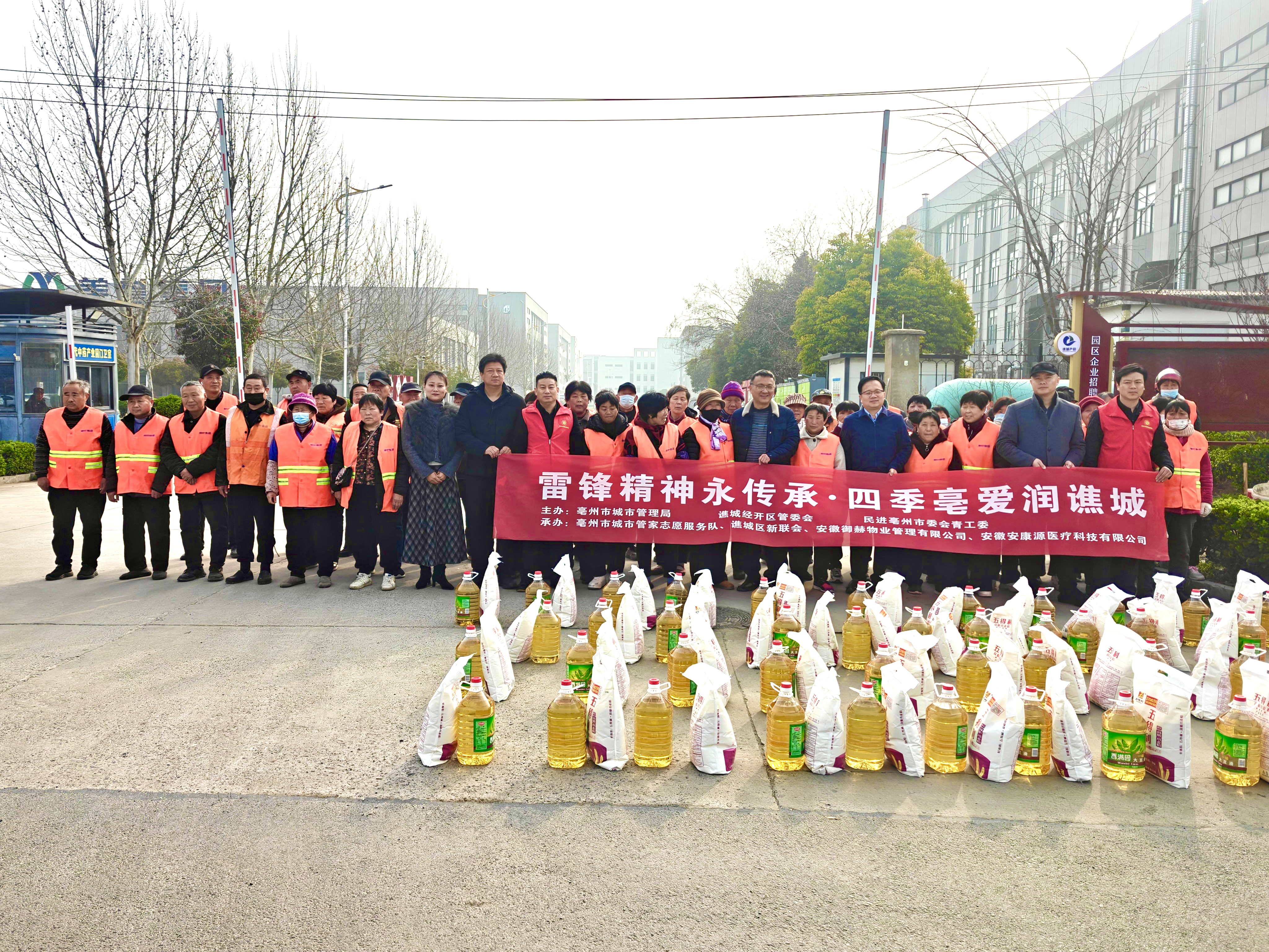 三月春风拂药都,文明薪火映初心。值此第63个“学雷锋纪念日”与传统民俗节气“二月二”交汇之际,民进亳州市委青工委、亳州市城市管家志愿者服务队、谯城区新联会携手安徽御赫物业管理有限公司,共同开展“四季亳爱·春暖一线”志愿行动,为50余名坚守岗位的环卫工人送上食用油、精面粉等生活物资,以务实之举传递城市温度,以真情实意致敬平凡英雄。亳州市政协副主席、民进亳州市委员会主委李丰参加活动。