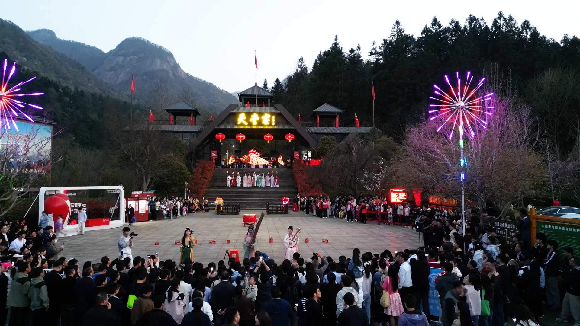 清明假日春意正浓、游玩正酣。安徽天堂寨风景区以漫山新绿、飞瀑流泉勾勒出春日盛景,同步推出巨型吊锅美食盛宴、“化鱼成龙”非遗夜游、国风主题巡游等特色活动,打造集观光、美食、文化、互动于一体的春日度假体验,吸引各地游客前来踏青寻春。