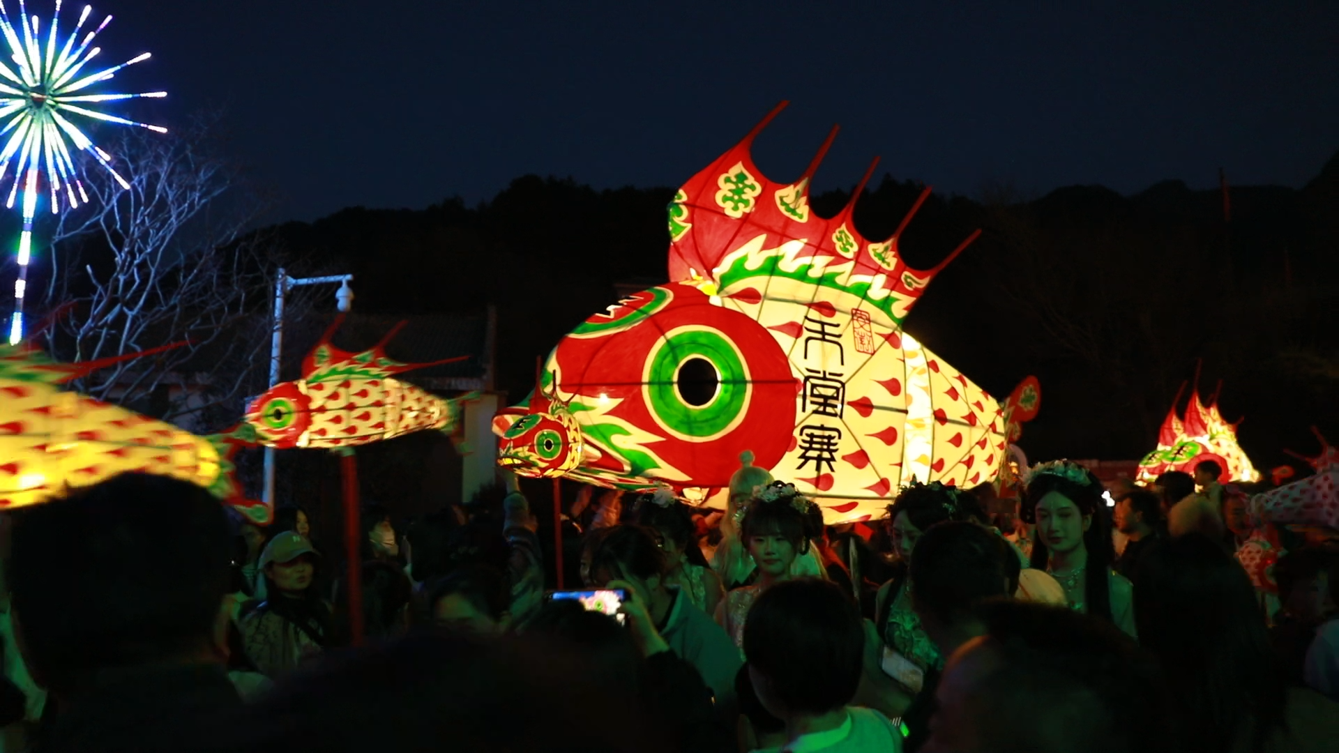夜幕降临,“化鱼成龙”非遗夜游精彩上演。光影与山水相映成趣,传统非遗与现代光影交融,身着国风服饰的NPC沿路互动,与游客趣味对答、赠送祈福卡片;灵动的鱼龙巡游队伍穿行其间,舞步轻盈、气势十足,引得游客驻足观赏、频频拍照。