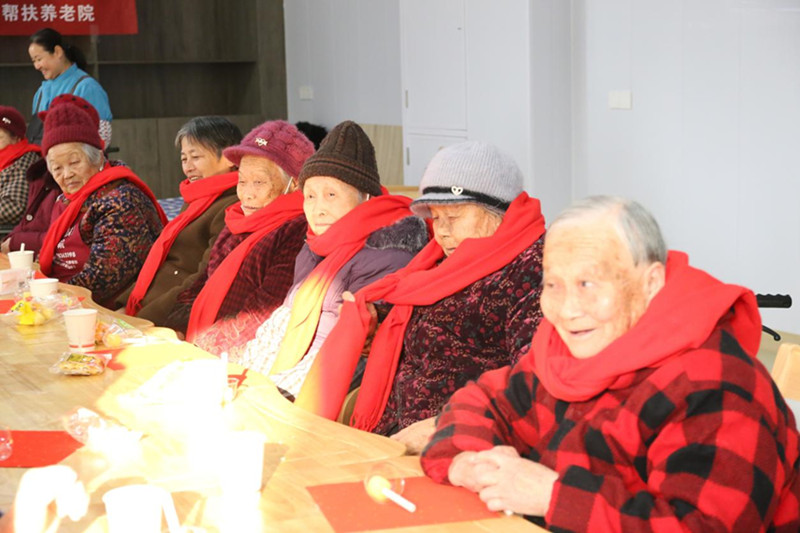 活动在一段暖心的仪式中拉开帷幕。图书馆工作人员为在场的每一位老人轻柔地佩戴上崭新的红围巾,并送上诚挚的新年祝福。一抹抹鲜艳的红色映衬着老人们喜悦的笑脸,瞬间点燃了现场的喜庆氛围。