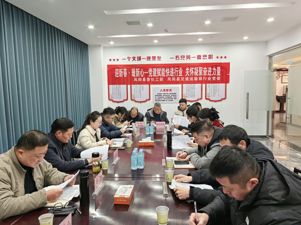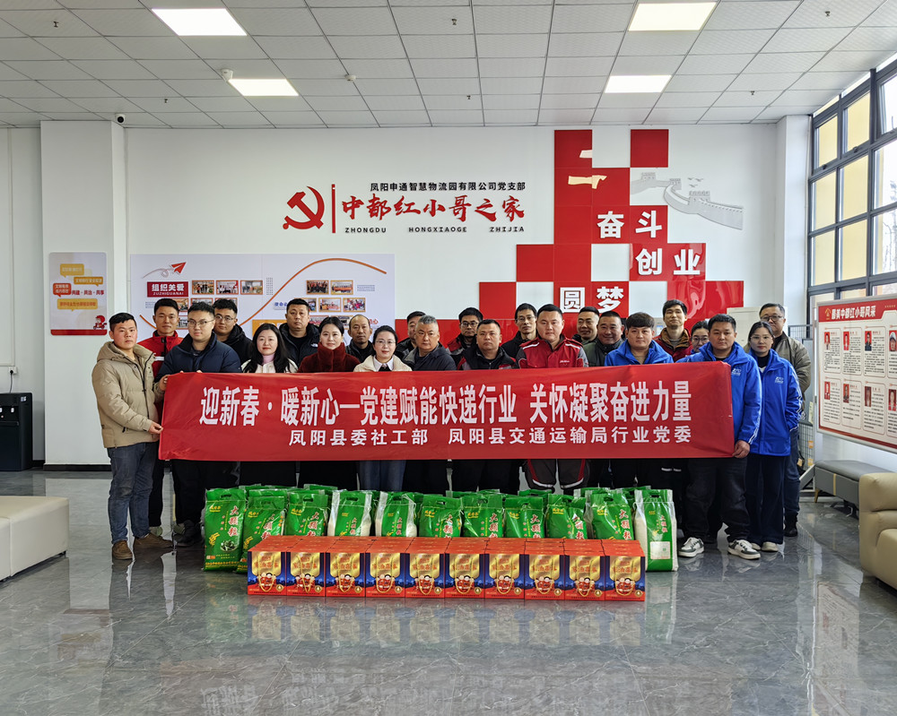 市场星报、安徽财经网 (www.ahcaijing.com)、掌中安徽讯 (李浩) 2月3日,凤阳县快递行业迎新春—暖“新”座谈会暨慰问活动在县申通智慧物流园党支部活动室举行。此次活动以“党建引领聚合力,暖‘新’护航促发展”为主题,既是对快递行业从业者的新春关怀,更是推动行业高质量发展的重要部署,县快递行业党支部、县交通运输局、县委社工部相关负责人及邮政、快递企业负责人、党员代表齐聚一堂,共话行业发展蓝图。