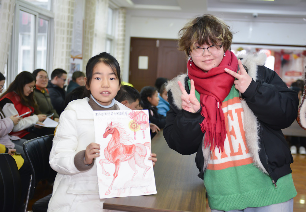 活动中,“爱朗读”协会志愿者带领孩子们诵读了《滁州西涧》《元日》等经典诗篇。琅琅书声中,滁州本地文化底蕴与中华传统节庆意蕴交融回荡,留学生志愿者们也一同参与诵读,在抑扬顿挫间感受中华诗词的韵律之美。“这是我第一次和中国孩子一起读古诗,感觉非常美妙,字里行间都是文化的温度。”一位留学生志愿者分享道。