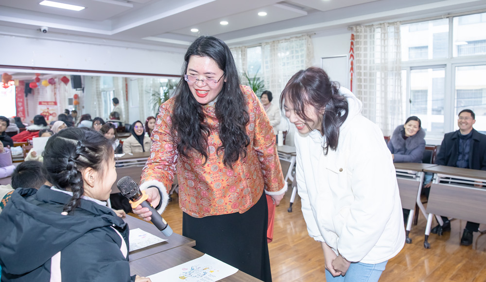 “非常开心能收到这张卡片,上面有不同国家的文字,让我觉得很新奇,也很温暖。”一位孩子在收到滁州学院留学生赠送的手绘祝福卡后兴奋地说。卡片上用四国语言写满美好祝愿,成为连接不同文化、传递真挚情谊的桥梁。留学生们用汉语向孩子们表达新年祝福,孩子们则热情回应,现场气氛温馨而活泼。