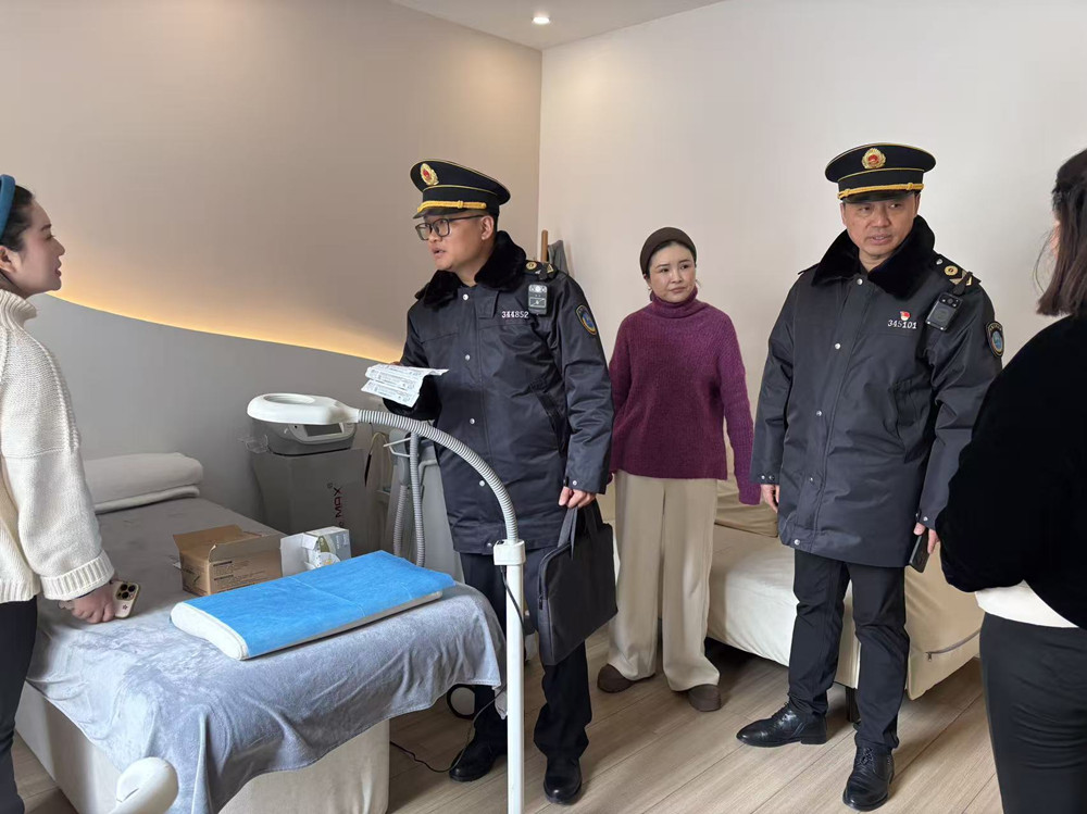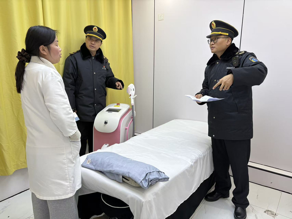 此次专项检查严格遵循“底数清、情况明、问题准、处置严”的工作原则,执法人员聚焦美容行业关键环节、突出问题,开展全方位、无死角核查。重点检查生活美容机构是否存在未取得《医疗机构执业许可证》擅自开展医疗美容诊疗活动的行为;是否违规购进、储存、使用药品及医疗器械;从业人员是否持有效健康证明上岗,资质是否合规;公共用品用具清洗、消毒、保洁流程是否规范到位;广告宣传是否存在夸大功效、虚假宣传等违法违规情形,坚决堵住监管漏洞,杜绝违法违规行为滋生蔓延。