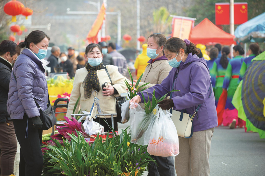 3月21日,群众在庙会上购买苗木花卉。 (毕鸿/摄)