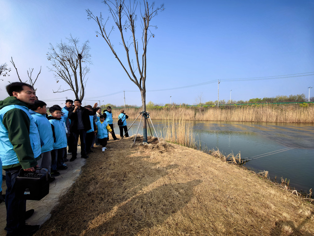 春日的合群河口湿地草木葱茏,作为城市水环境治理的 “绿色样板”,这里的尾水净化系统成为生动教材。市重点工程处关工委工作人员带领青少年沿着生态步道前行,用通俗易懂的语言讲解“污水变清流”的全过程:“湿地里的芦苇、菖蒲是天然净化器,搭配生态滤料和微生物,能让处理后的尾水达到地表水Ⅲ 类标准标准。”志愿者们还现场演示水质检测小实验,当青少年们看到浑浊水样经模拟湿地系统过滤后变清澈,纷纷惊叹生态力量的奇妙。