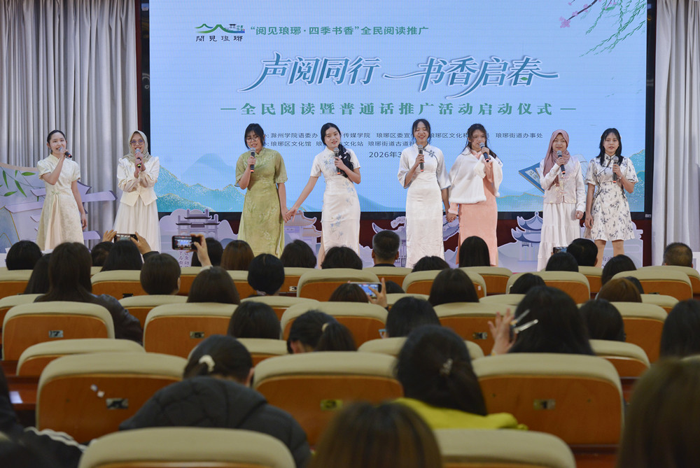 市场星报、安徽财经网 (www.ahcaijing.com)、掌中安徽讯 (张倩/文 王绪岩/图) 春和景明,书香氤氲。3月22日下午,由滁州市琅琊区委宣传部、区文化和旅游局、琅琊街道办事处联合滁州学院语委办、文学与传媒学院主办,古道社区等单位共同承办的“阅见琅琊,四季书香”之“声阅同行,书香启春”全民阅读暨普通话推广行动启动仪式,在滁州学院会峰校区行政楼报告厅隆重举行。本次活动以经典诵读为载体,将全民阅读与普通话推广有机融合,在进一步巩固“阅见琅琊”品牌成果,营造规范文明的语言环境,传承中华优秀传统文化。