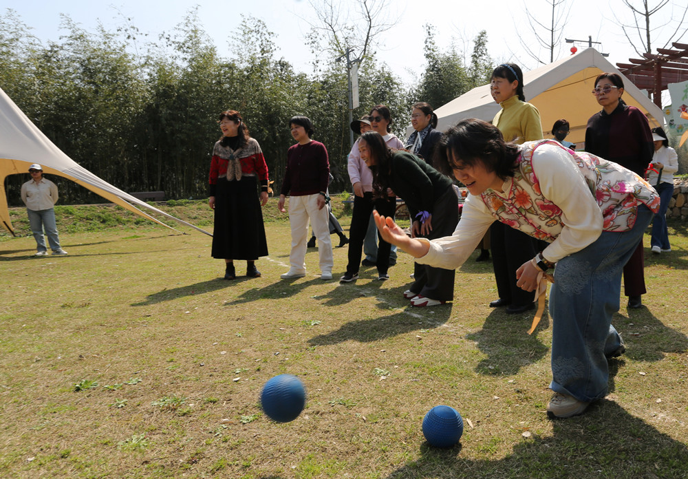 大会结束后,姐妹们走出会场,在暖阳中开展拓展活动。在蒋元慧、葛强凤、童娜三位会员教练的带领下,大家放下忙碌,积极参与团队协作游戏,欢笑声不断,情谊悄然增进,卸店小院的田园风光与姐妹们的欢声笑语交相辉映,展现出会员们朝气蓬勃、团结向上的风貌。