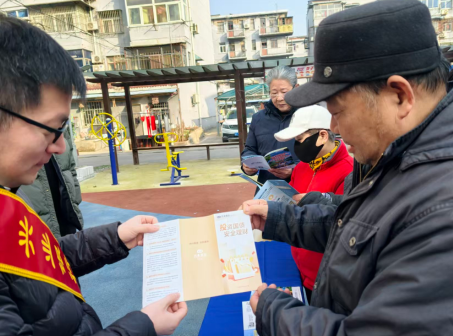 年味渐浓时,金融惠民忙。为预热3月份国债发行、拓宽国债服务覆盖面,兴业银行蚌埠分行宣传小分队来到张公山锦江社区开展主题为“投资国债 安全理财”的金融知识宣传活动。