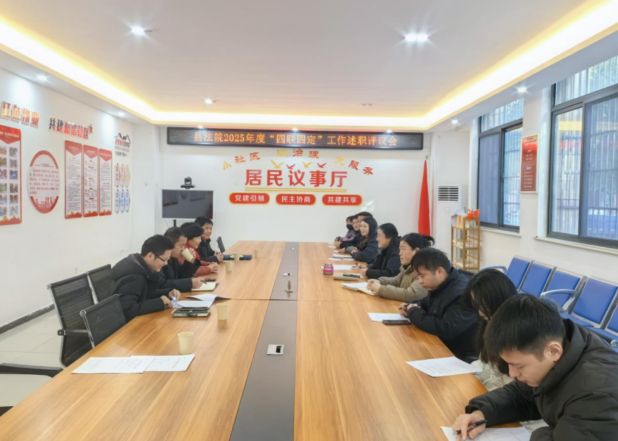 述职评议会上,肥西法院机关党委专职副书记童磊详细汇报了法院2025年度“四联四定”工作及在职党员到社区报到情况。报告围绕文明创建、志愿服务、在职党员社区报到、“双提升”工作等重点工作,系统梳理了一年来的工作举措与成效,同时结合社区需求查摆不足,明确了后续优化方向。