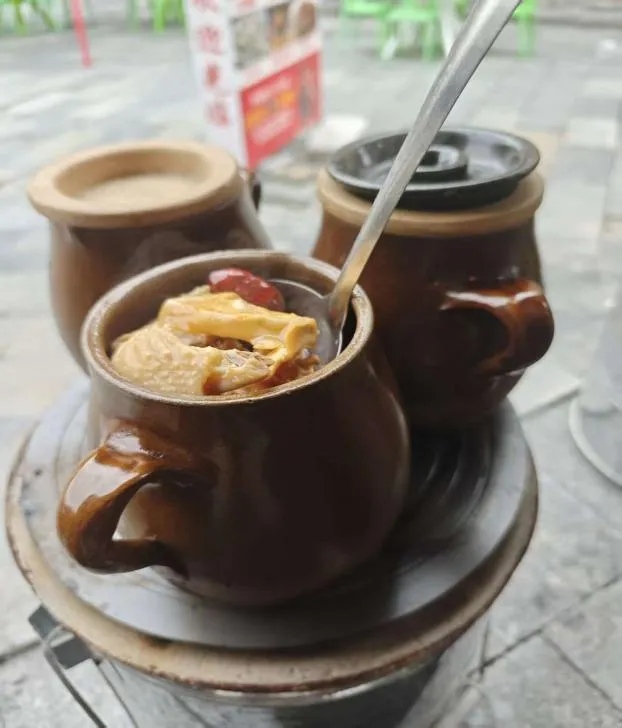 古法瓦罐慢煨数小时,新鲜食材的鲜味全锁在汤里,清澈鲜甜无多余调料。冷天喝上一碗,温润滋补,从喉咙暖到胃里,是烟火气里的非遗暖意。